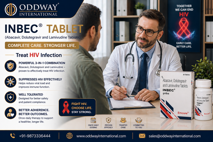 In the USA there is increasing demand for advanced HIV therapies which now includes Inbec Tablet as a reliable treatment option. The Inbec Tablet provides value because it enables patients to receive effective treatment through simplified medical procedures. The Canadian healthcare providers are adopting this practice because they see its advantages for current medical treatment methods. The medication serves as a Generic Triumeq alternative which contains lamivudine abacavir and dolutegravir for effective antiviral treatment. Oddway International enables international distribution so that clinics hospitals and medicine importers can sustain their supply of premium pharmaceutical products which lead to better patient results.