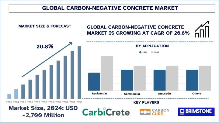 According to a new report by UnivDatos, the Carbon-Negative Concrete Market is expected to reach USD million in 2033 by growing at a CAGR of 20.8% during the forecast period (2025-2033F). The Global Carbon Negative Concrete Market is in a phase of rapid growth, owing to the ever-increasing necessity for environmentally friendly building materials in the global market. As climate change mitigation ranks high on the list of global priorities, the demand for carbon-negative concrete, which is known for its high level of carbon dioxide absorption, is witnessing a significant surge in demand. This type of concrete is also attracting significant attention in the market due to its high level of flame resistance, mold resistance, and insulation properties, which are making this material a viable option for those looking for a replacement for traditional concrete in green buildings and other environmentally friendly constructions. The regulatory environment in regions such as the EU, North America, and the Asia Pacific is in a state of flux, which is creating a fertile ground for bio-based building materials, which include carbon-negative concrete.