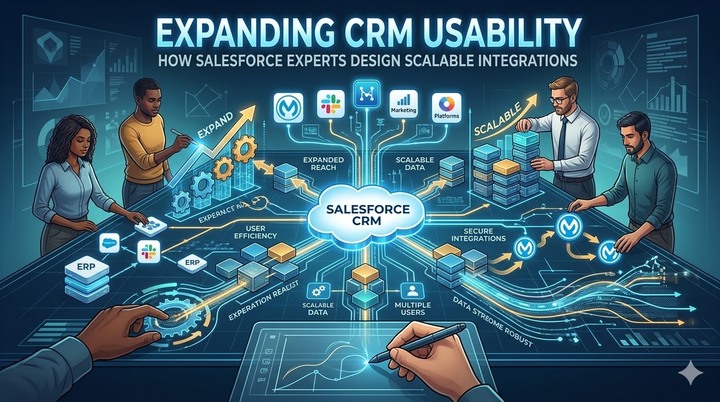 The key role of Salesforce integration partners is to transform fragmented business systems into a central operational ecosystem. The integration partner's expertise extends beyond simple platform connections to scalable architecture establishment, security governance, and process automation. The collaboration with experienced integration consultants enables enterprises to leverage proven frameworks and technical capabilities that internal departments struggle to make use of. The integration consultants ensure enterprises that they benefit from a robust CRM infrastructure and achieve continuous growth.