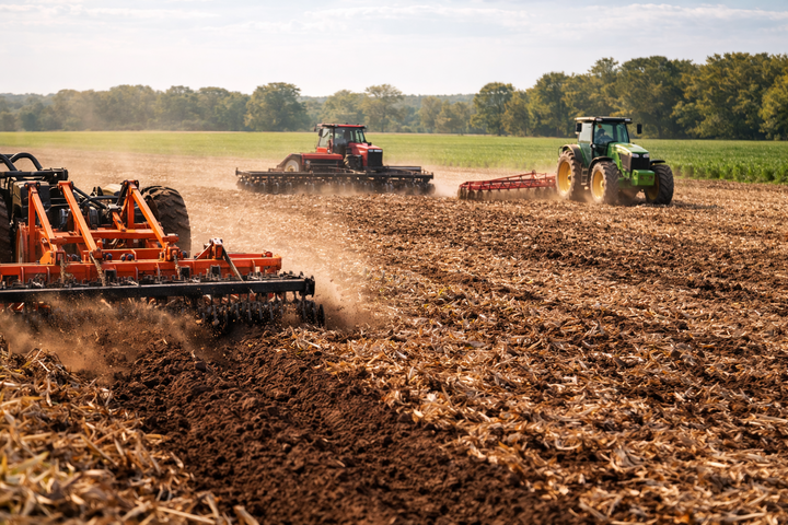 For operations requiring shallow soil disturbance, tillers provide controlled mixing of soil and residue. Tillers are commonly used in specialty crop production and smaller fields where precision and surface control are especially important.