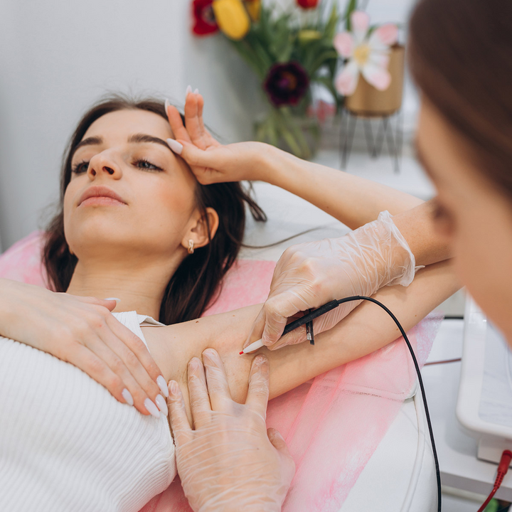 Electrolysis is a method of permanent hair removal that works by inserting a very fine probe into each hair follicle. A small amount of electrical energy is delivered to destroy the root of the hair, preventing future growth. It treats hair individually, making it a precise but time-intensive method.