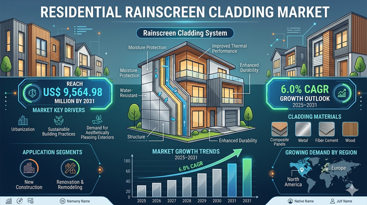 The Residential Rainscreen Cladding Market of this industry covers a wide variety of cladding materials including metal panels, fiber cement, terracotta, high-pressure laminates, composite materials, and stone-based solutions used in residential buildings. These systems are designed to create a ventilated cavity between the exterior cladding and structural wall, enabling effective moisture control, improved insulation, and enhanced structural longevity. According to The Insight Partners, increasing urban housing developments, renovation activities in developed economies, and rising investments in sustainable residential infrastructure are significantly expanding the application base of rainscreen systems across global regions.