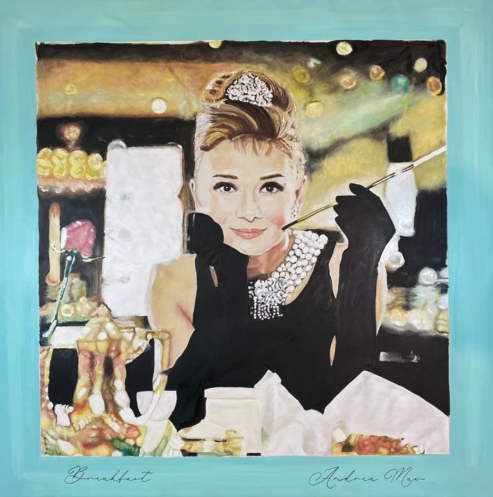 'Breakfast at Tiffany's' is my homage to the elegance and grace of a bygone era exemplified by Audrey Hepburn in her true personal nature. This work features Holly Golightly in realism with soft background where I play with light entering the room from all angles.
